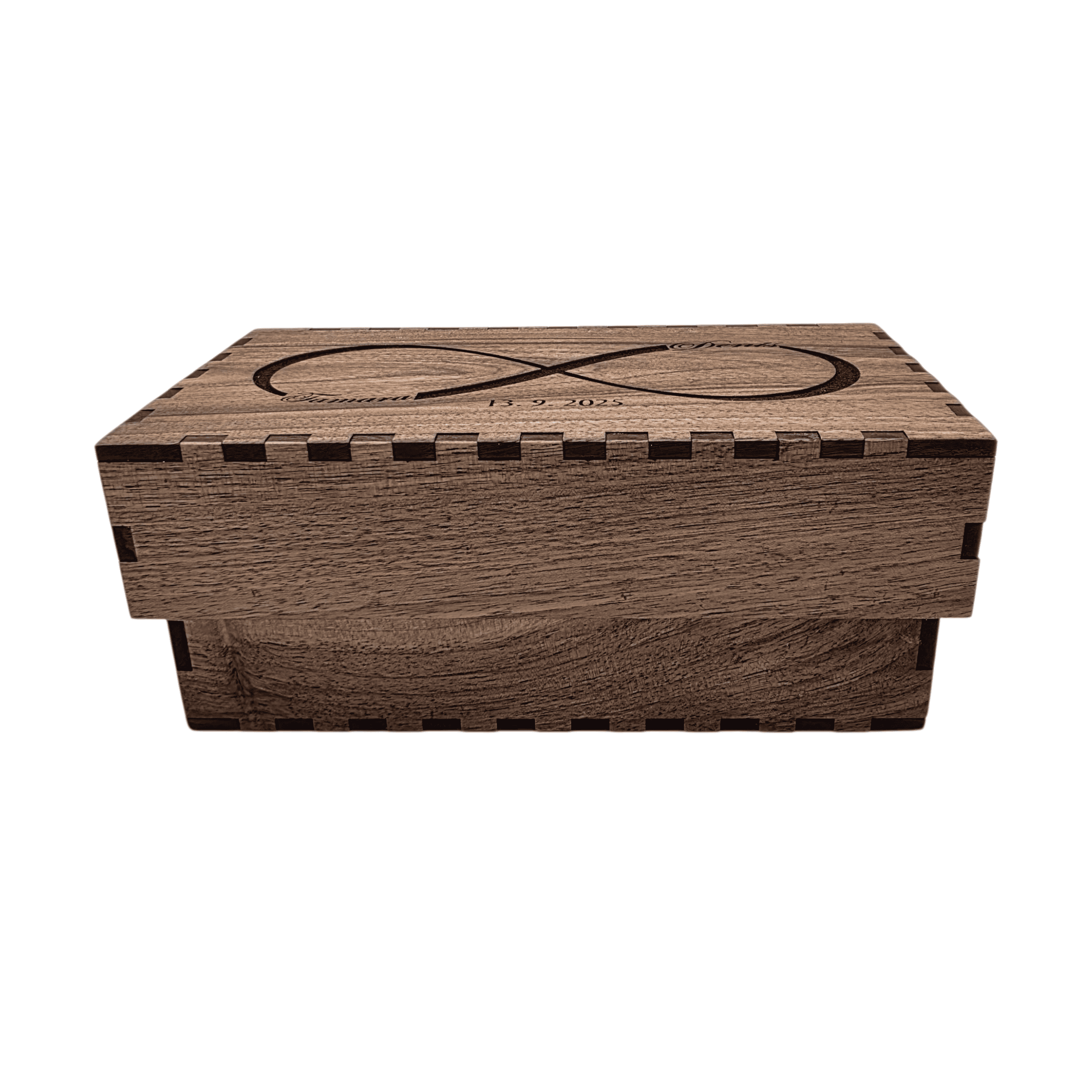 Ta lesena škatla za denar je dovolj prostorna, da lahko vanjo vložite bankovce po 50 € ali 100 €, hkrati pa je primerna tudi za shranjevanje nakita, kartic, spominkov in drugih dragocenosti. Namesto klasične kuverte boste obdarovancu podarili nekaj trajnega in unikatnega – škatlo, ki bo imela čustveno in praktično vrednost še dolgo po slavju.