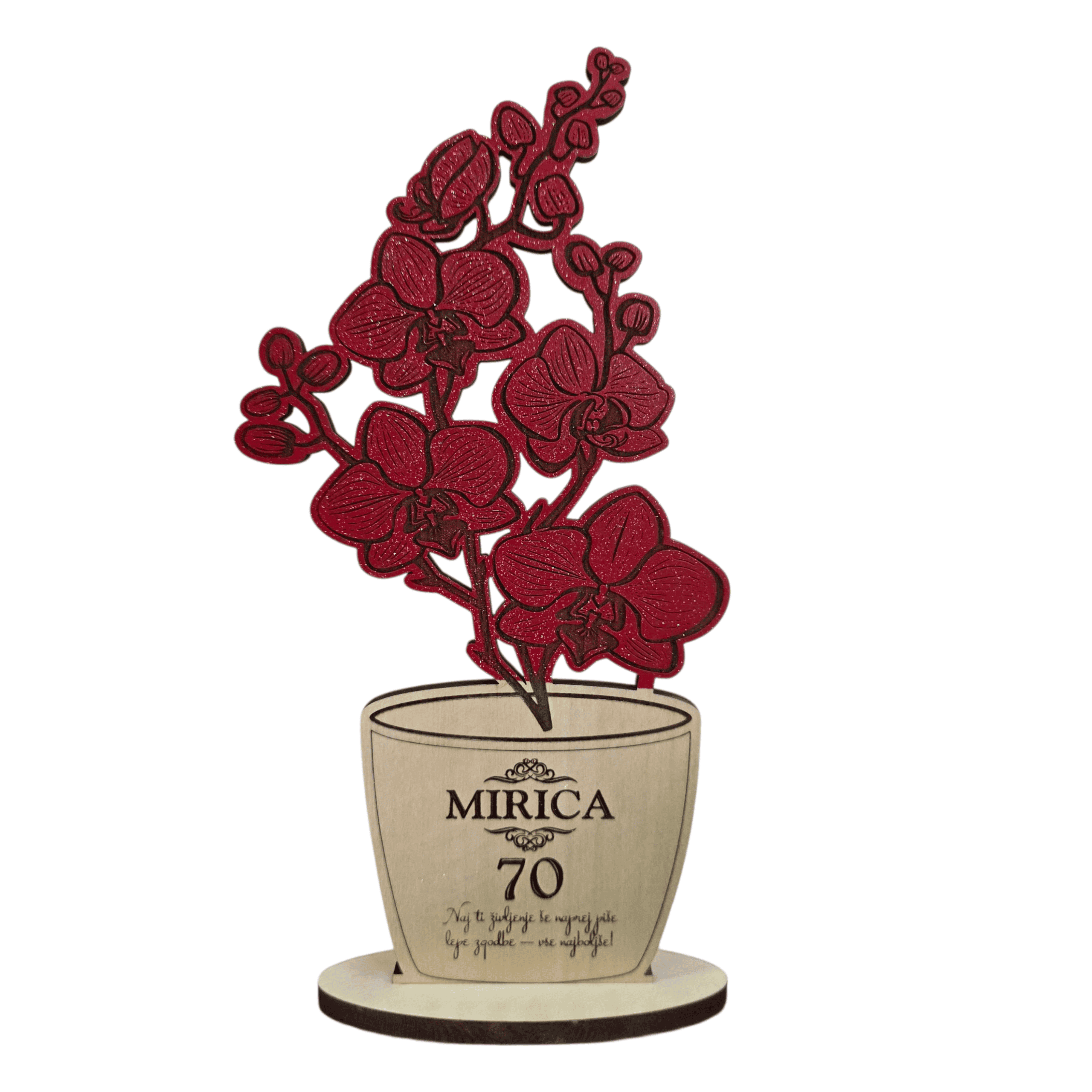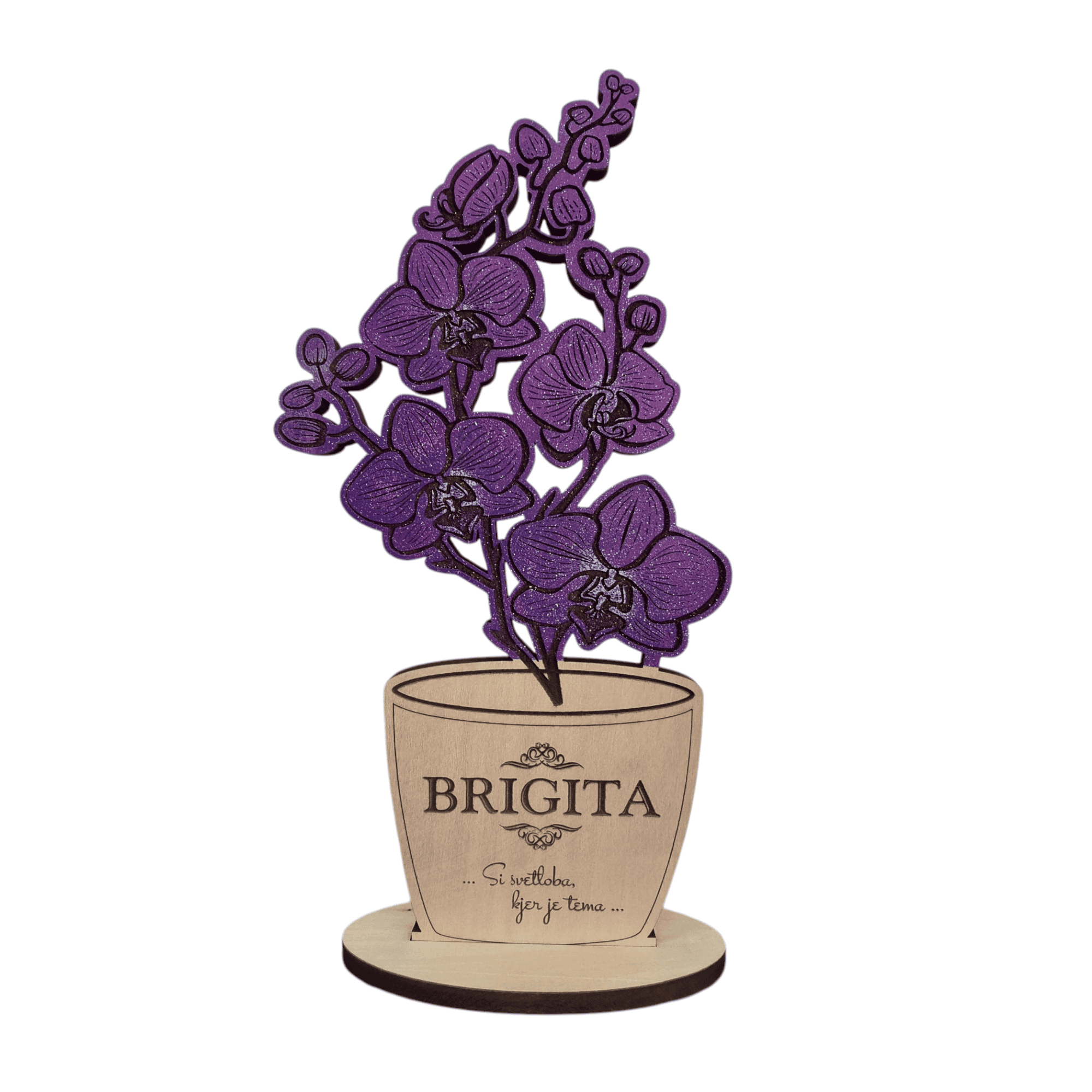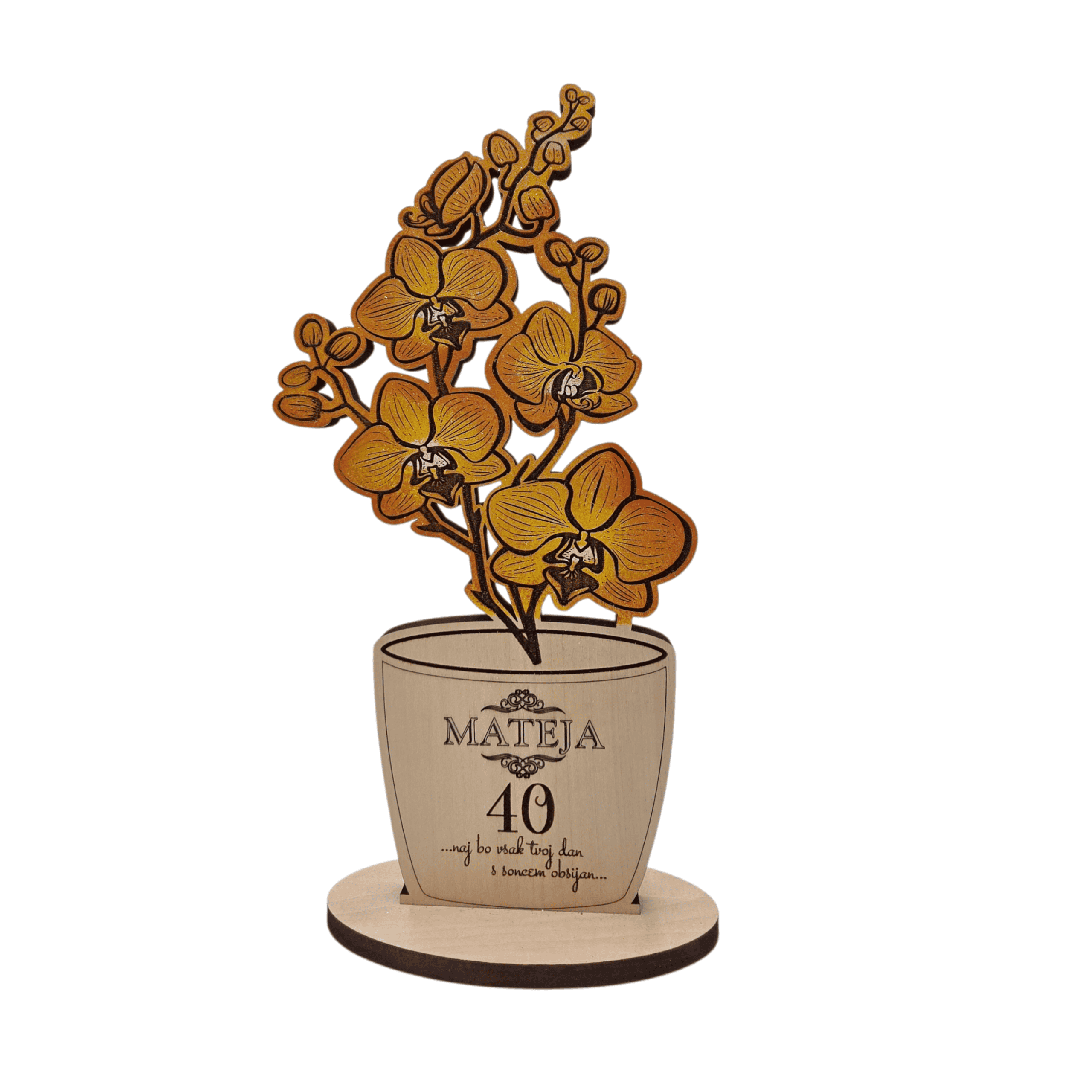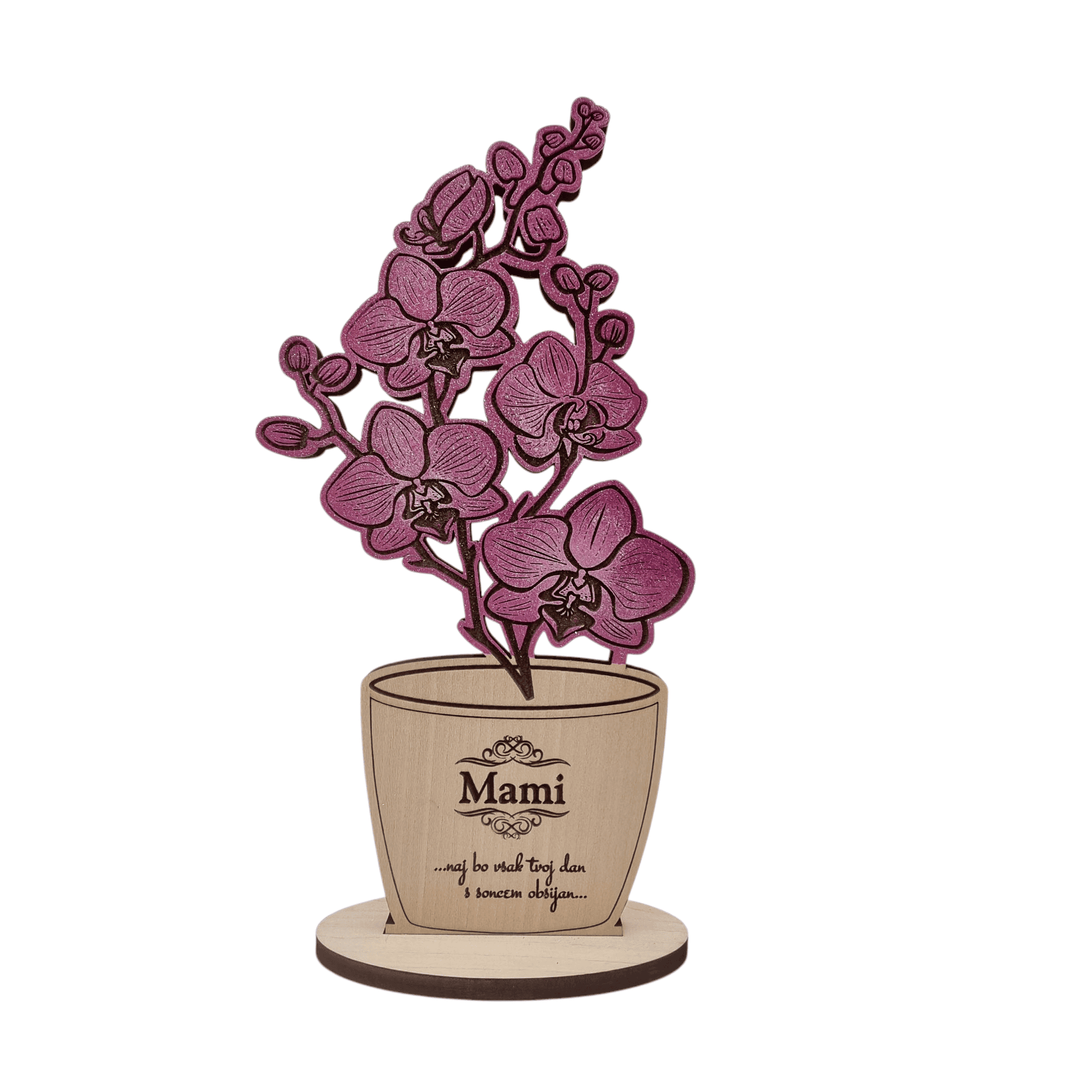 Ta čudovita orhideja v lončku iz slovenskega lesa je popolno darilo za vzgojiteljico ali učiteljico. Z nežno gravuro po vaši meri izraža iskreno zahvalo ob koncu šolskega leta.