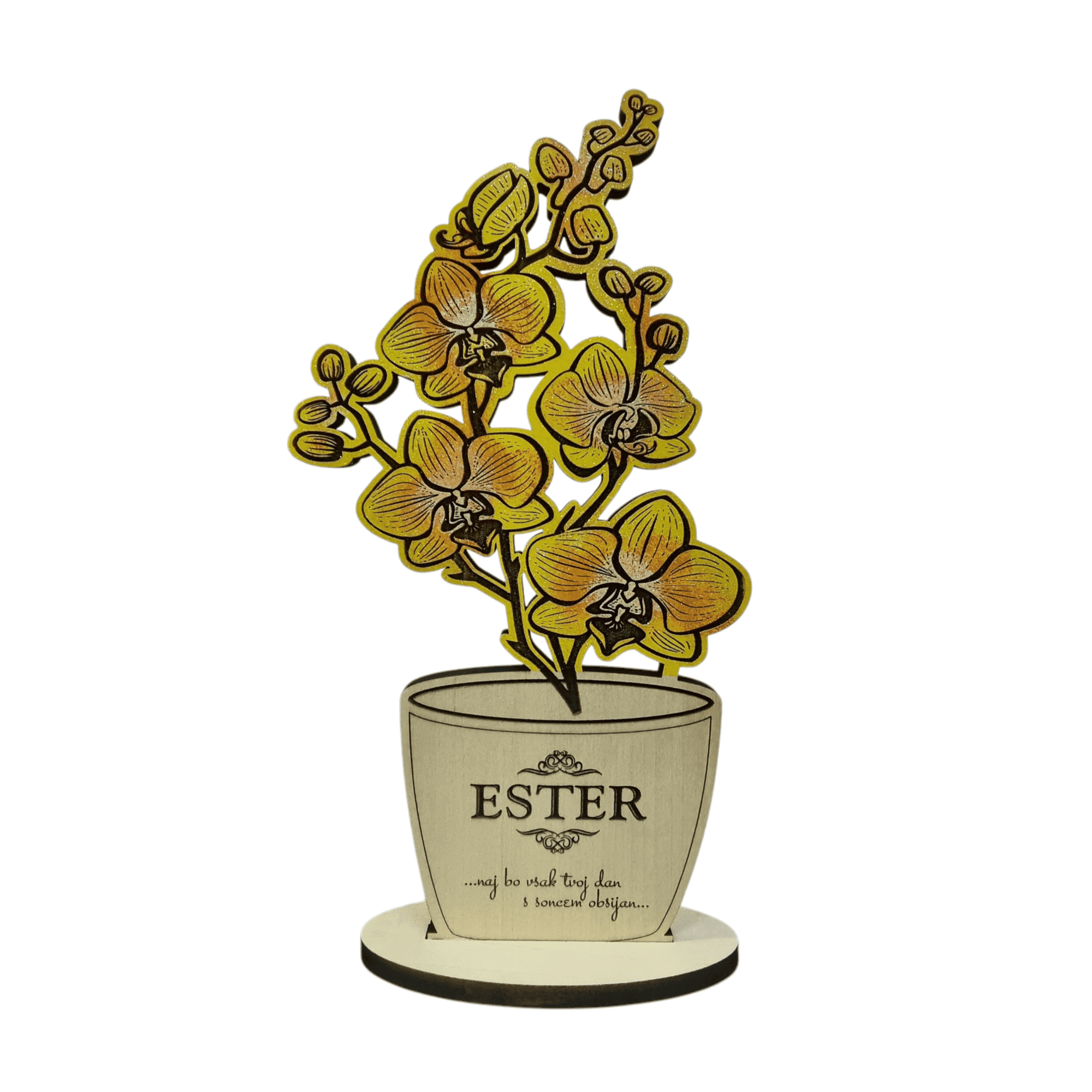Samostoječa ORHIDEJA v cvetličnem lončku iz masivnega lesa je super ideja za darilo!