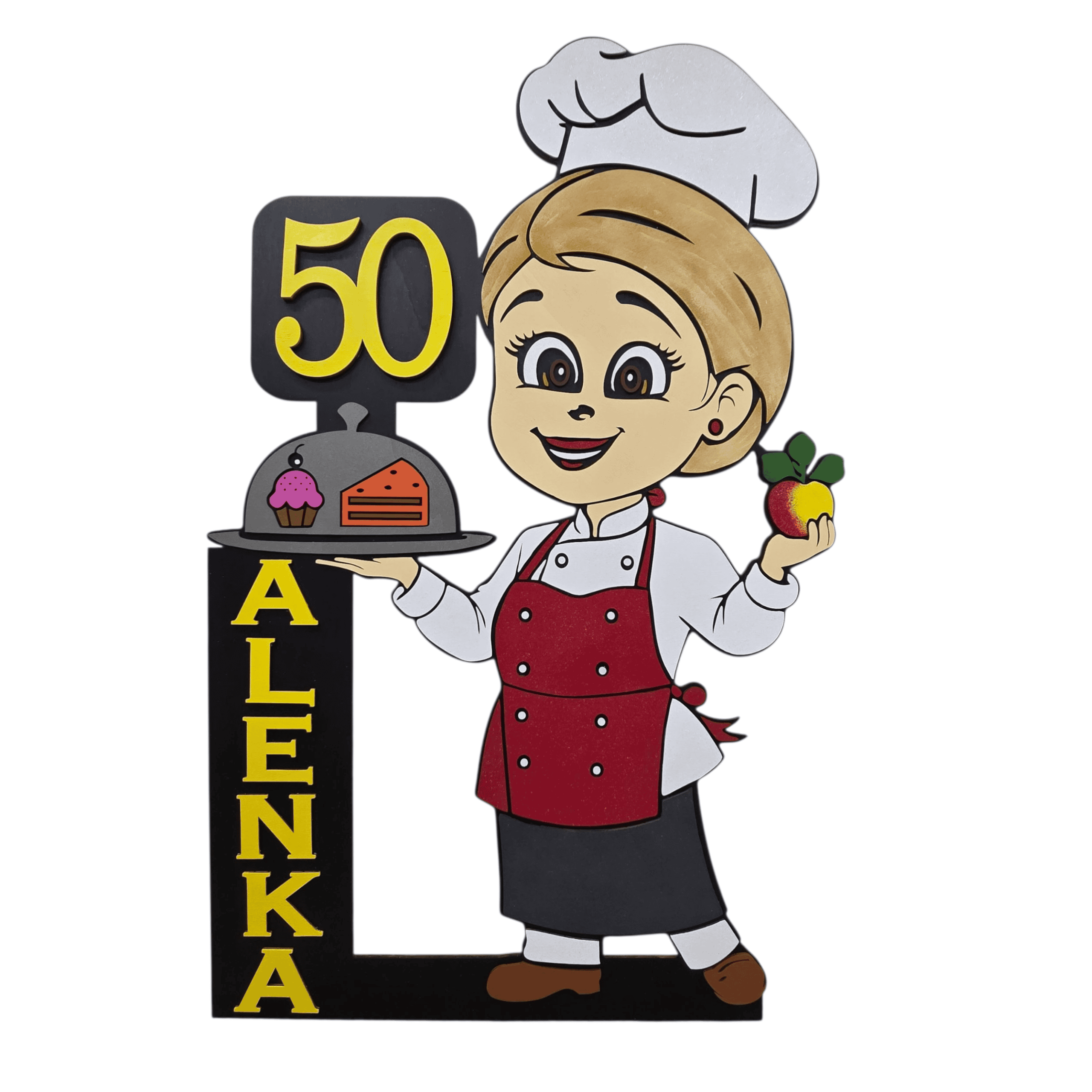 Ali vaša bodoča slavljenka opravlja poklic kuharice ali pa pa se ukvarja s peko najboljših slaščic? Presenetite jo s čudovitim lesenim znakom za obletnico, ki mu po želji dodamo tudi detajle.
